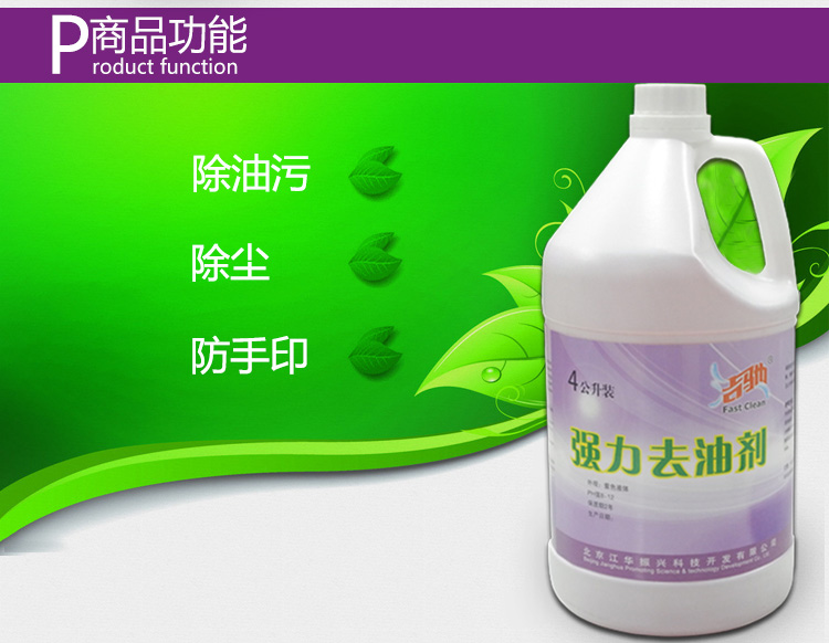 高效強(qiáng)力去油劑能將物體表面積的油污,污垢迅速溶解,清除干凈。多用與灶具, 排風(fēng)扇,廚房地面,工廠及公共停車場(chǎng)。 本產(chǎn)品是各種油污的克星。